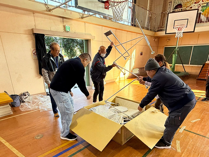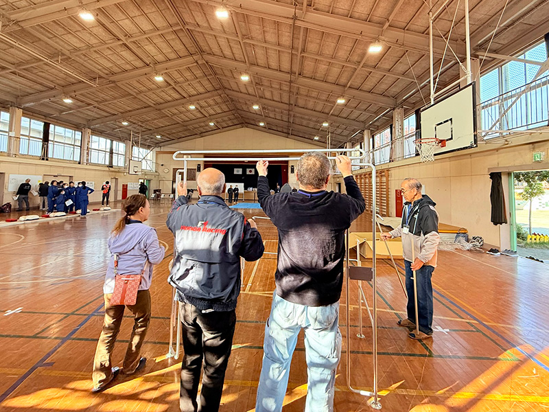 2025年11月15日(土)、大牧小学校にて地域8自治会の避難所運営訓練が行われ、さいたま市職員、消防団員、地域自治会から約50名が参加しました。